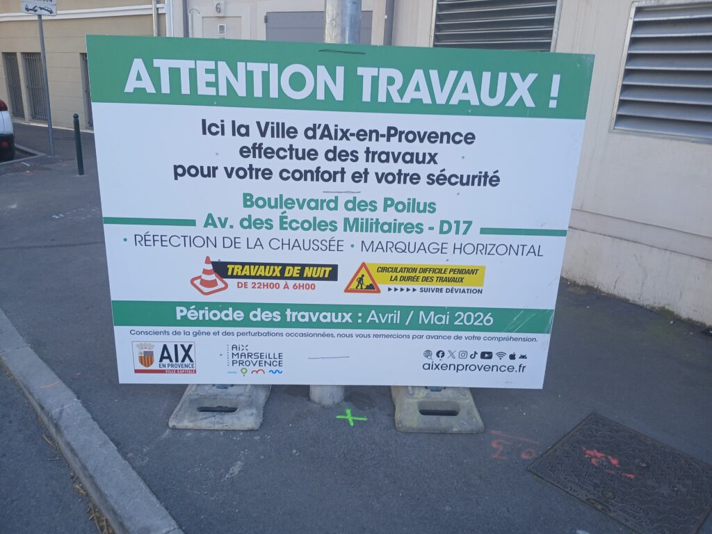 Des travaux boulevard des Poilus sont annoncés par affichage pour avril/mai 2026.